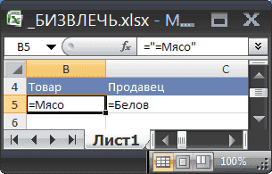 - Условия выбора необходимо записать в специальном формате: = «= Мясо» (поиск в столбце Товар будет осуществляться только по значениям, которые в точности совпадают со словом Мясо (или Мясо, МЯСО, то есть без различия между верхним и нижним регистром условие не записывается в форме = «= Meat», но достаточно вставить значение Meat в ячейку, условию будут удовлетворять текстовые строки, содержащие слово Meat, например » СВЕЖЕЕ МЯСО »,« баранина »и др.)