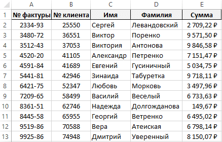 для конкретной фамилии конкретного покупателя отобрана целая строка информации.