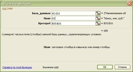 Рис. 6. 2. Аргументы окна функции BDSUM