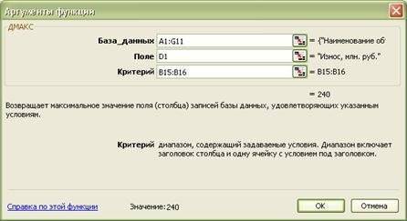 = DMAX (A6: E12; «Прибыль»; A1: F3)