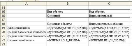 | · Создайте критерий выбора для типов вспомогательных объектов в ячейках C15: C16. Остальные параметры таблицы рассчитайте аналогично (рис. 6.4). Результаты расчета представлены на рис. 6.3. | ![]() |