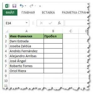 Предположим, у нас есть таблица со списком имен и фамилий.