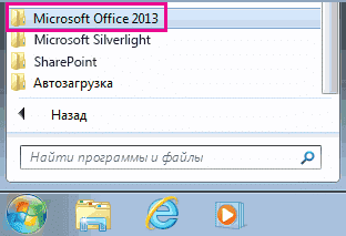 Найти программы и файлы Чтобы увидеть группу Microsoft