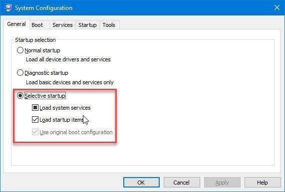 Нажмите клавиши Windows + R, введите msconfig и, наконец, нажмите Enter. Вы должны увидеть окно «Конфигурация системы», перейдите на вкладку «Общие» и выберите «Выборочный запуск». Затем перезагрузите компьютер с Windows 10 и проверьте, работает ли Excel.