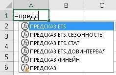 Рис. 2. Семейство функций ПРОГНОЗ в Excel