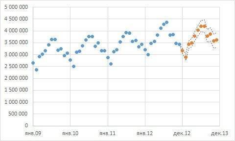 Рис. 4. Ожидаемые значения на основе функции FORECAST.ETS