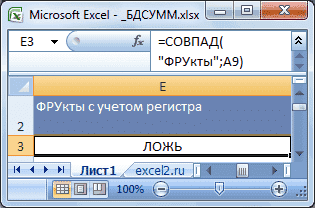 Как упоминалось выше, функция BDSUMM может выполнять поиск не только по шаблону, но и с учетом регистра, теперь это именно та опция. Для начала определяем условие выбора критерия, если встречается имя «С.ИВАНОВО», заглавными буквами, то производим сумму, для определения этого критерия нам понадобится формула:
