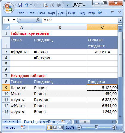 - заголовки таблицы критериев были такими же, как заголовки исходной таблицы (если критерий не указан в формуле).