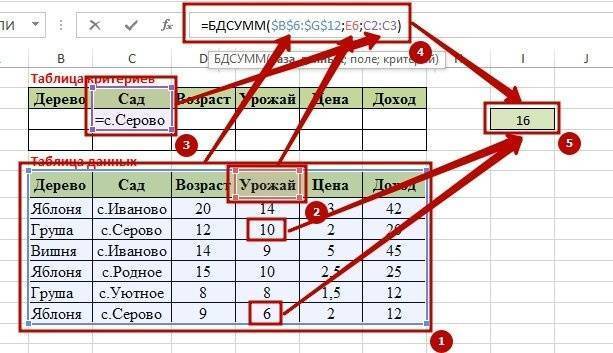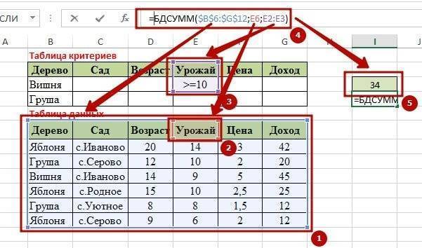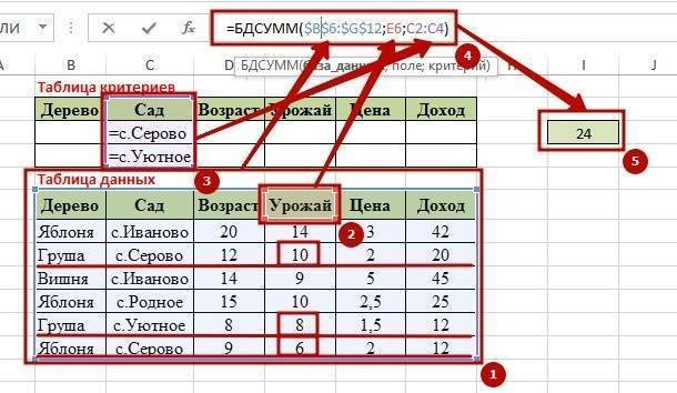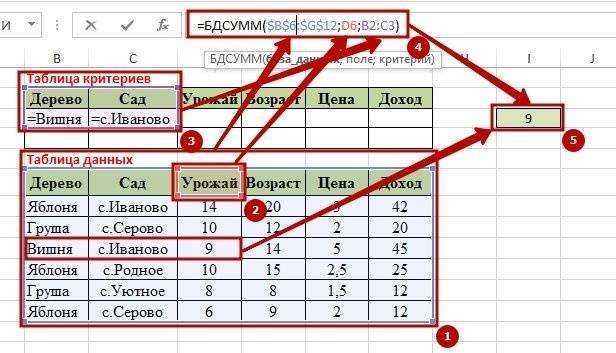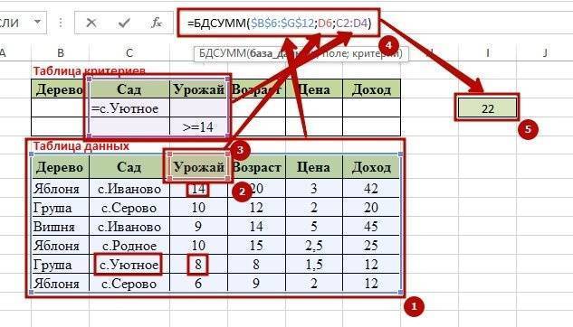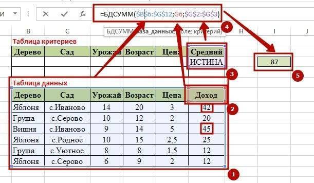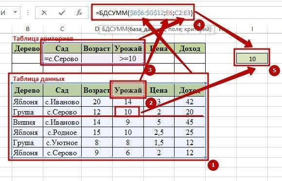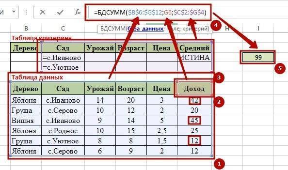 Суммирование в базе данных по условию с помощью функции БДСУММ