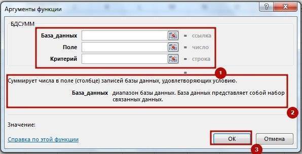 - поле — это аргумент, который принимает текстовые данные, характеризующие имя поля в базе данных (заголовок столбца таблицы), или числовые значения, которые характеризуют порядковый номер столбца в списке данных. Отсчет начинается с единицы, то есть первый столбец списка может быть обозначен цифрой 1. Другой вариант заполнения аргумента поля — передать ссылку на требуемый столбец (на ячейку, содержащую его заголовок);