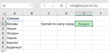 = ИНДЕКС (интервал_столбец; порядковый_ячейка)