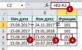 Это очень простой и понятный пример, в котором нужно вычесть дату начала из последней даты и преобразовать полученное значение в числовой формат. Как видите, это можно сделать и без помощи функций, но это не поможет нам получить рабочие дни.
