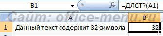С его помощью определяется длина струны. В результате возвращается целое число, указывающее количество символов в тексте.