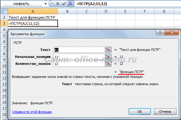 Синтаксис: MID (текст; начальное_число; число_знаков)
