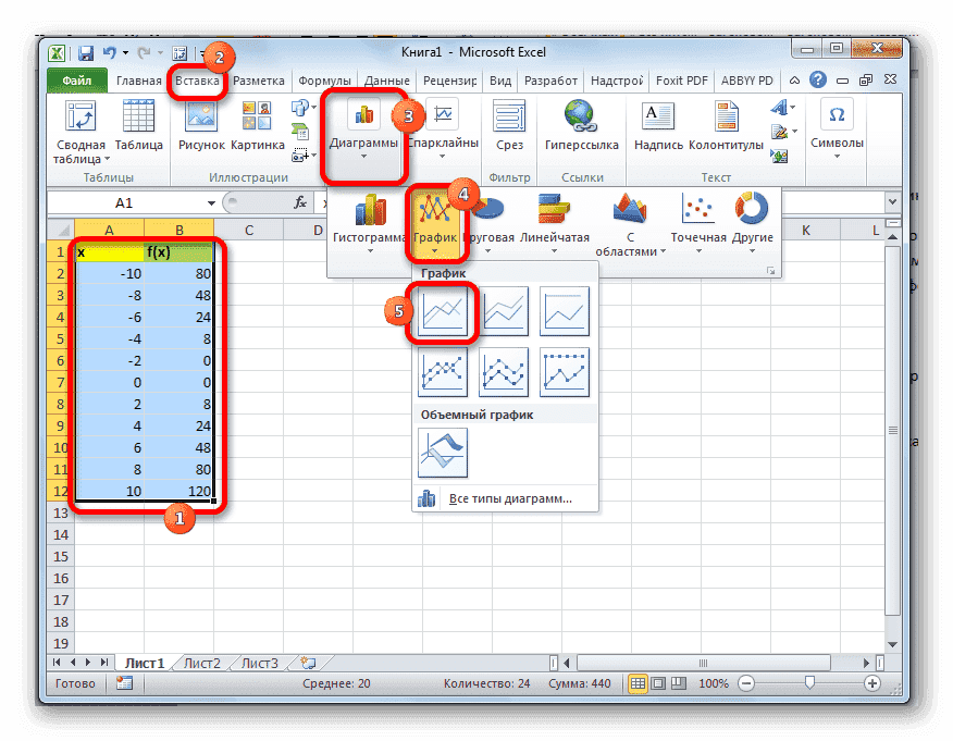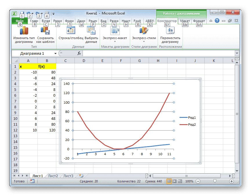 Вкладка применяется путем создания таблицы, в которой значение аргумента с выбранным шагом будет записано в один столбец, а соответствующее значение функции — во второй. Затем на основе расчета можно построить график. Посмотрим, как это делается, на конкретном примере.