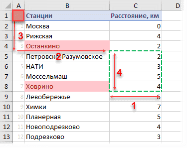 Бывают ситуации, когда заранее неизвестно, какие клетки на листе нужно подсчитывать. Например, предположим, что вам нужно реализовать небольшой калькулятор транспортировки в Excel для расчета расстояния от одной станции до другой: