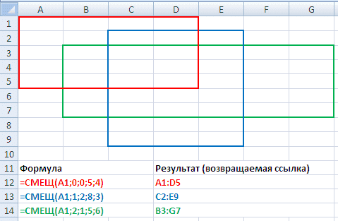 Давайте посмотрим на несколько примеров, чтобы понять, как работает функция СМЕЩЕНИЕ:
