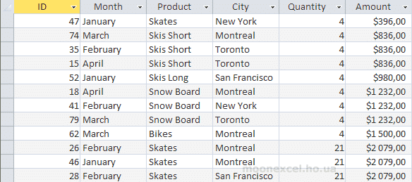 Теперь давайте дополнительно рассортируем наш пример для другого поля. Пусть это будет поле «Город», которое показывает место, где продаются товары.