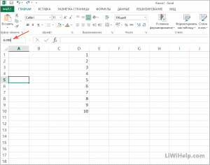 Что делать, если нужно добавить очень большое количество строк. Здесь тоже нетрудно. Поместите курсор в ячейку строки (например, на скриншоте она находится под номером 5), перед которой вы хотите вставить. В поле Имя панели инструментов установите диапазон, начиная с выбранного числа в формате: