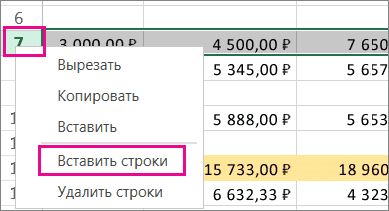 Чтобы вставить несколько строк, сделайте следующее: Выделите такое же количество строк, над которыми вы хотите добавить новые. Щелкните выделение правой кнопкой мыши и выберите «Вставить строки».