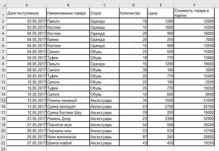 В данной статье, на примере, рассмотрим как работает фильтрация в MS Excel. В качестве примера будем использовать таблиц с данными о наличии компьютерной техники на складе магазина.
