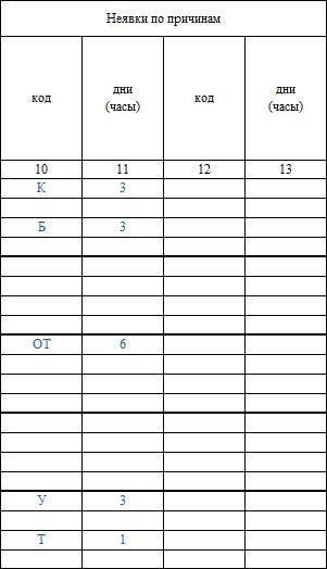 Форма Т-13 табель учёта рабочего времени. Страница содержит особенности заполнения в виде образца в Excel.