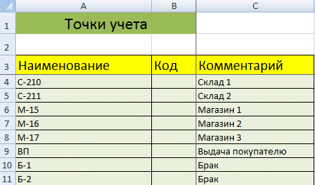 - Для правильного учета запасов в Excel необходимо составить справочники. Их можно взять на 1-3 листа. Это справочник «Поставщики», «Покупатели», «Пункты учета товаров». В небольшой организации, где не так много подрядчиков, справочники не нужны. Нет необходимости составлять перечень точек учета товаров, если у компании всего один склад и / или один магазин.