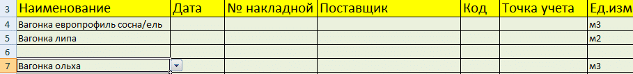 По такому же принципу создаем выпадающий список и автозаполнение для столбцов «Поставщик» и «Код».
