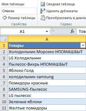 Предположим, у нас есть список товаров, которые нужно как-то сгруппировать: