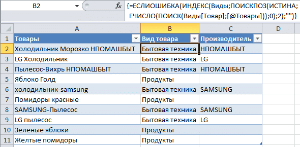 Формула для поиска неточного совпадения текста в Excel