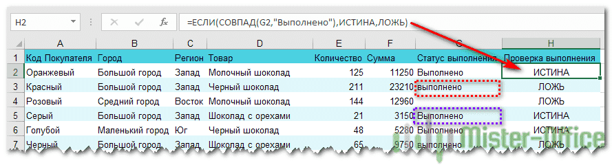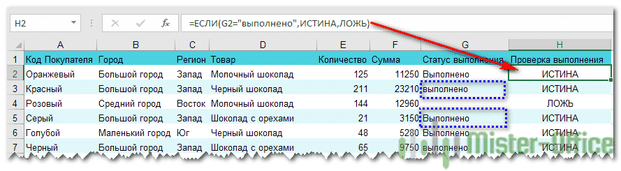 = ЕСЛИ (G2 = «Готово»; ИСТИНА; ЛОЖЬ)