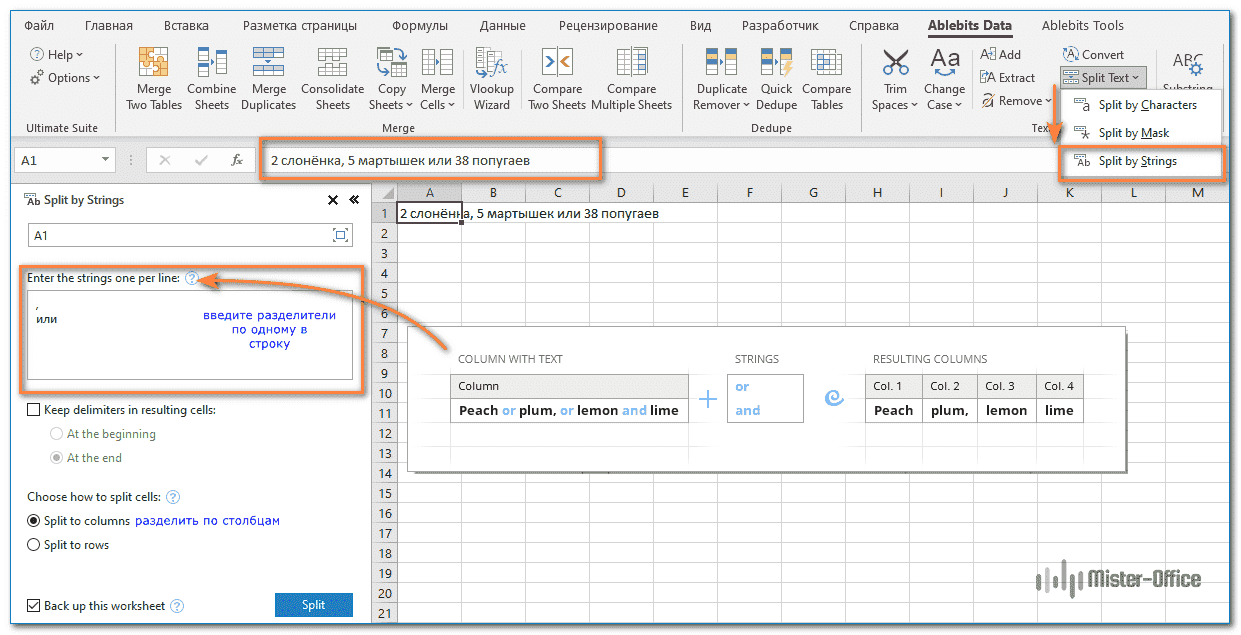 Как разделить ячейки в Excel с помощью функции разделения текста Split Text.