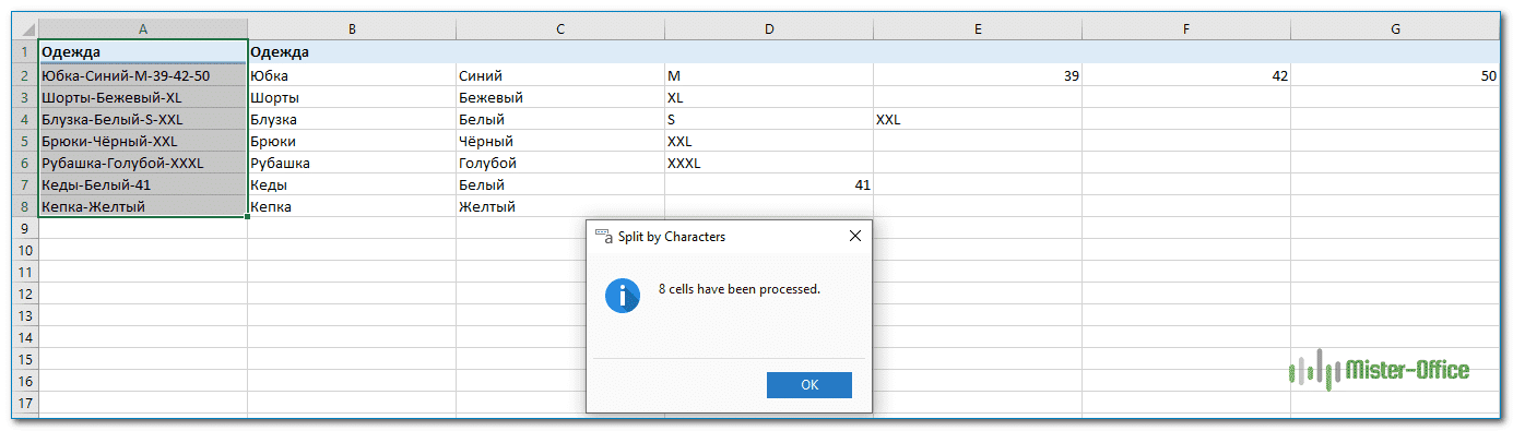 Чтобы преобразовать текст в ячейках в Excel, необходимо определить расположение разделителя внутри него. Что может быть такое разделитель? Это запятая, точка с запятой, косая черта, двоеточие, дефис, восклицательный знак и т.д. И, как мы увидим позже, тоже целое слово.