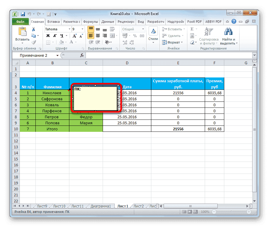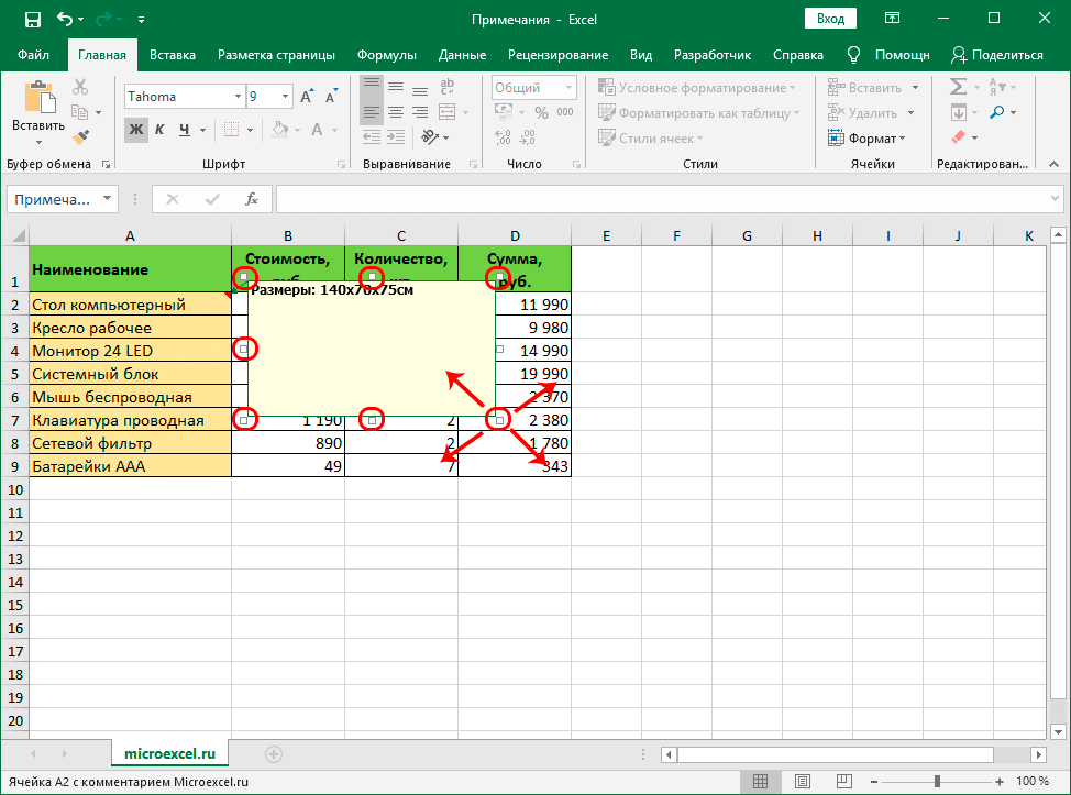 Работаем с примечаниями в таблице Excel