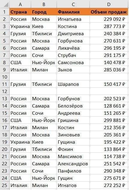 Сортировка данных в Excel