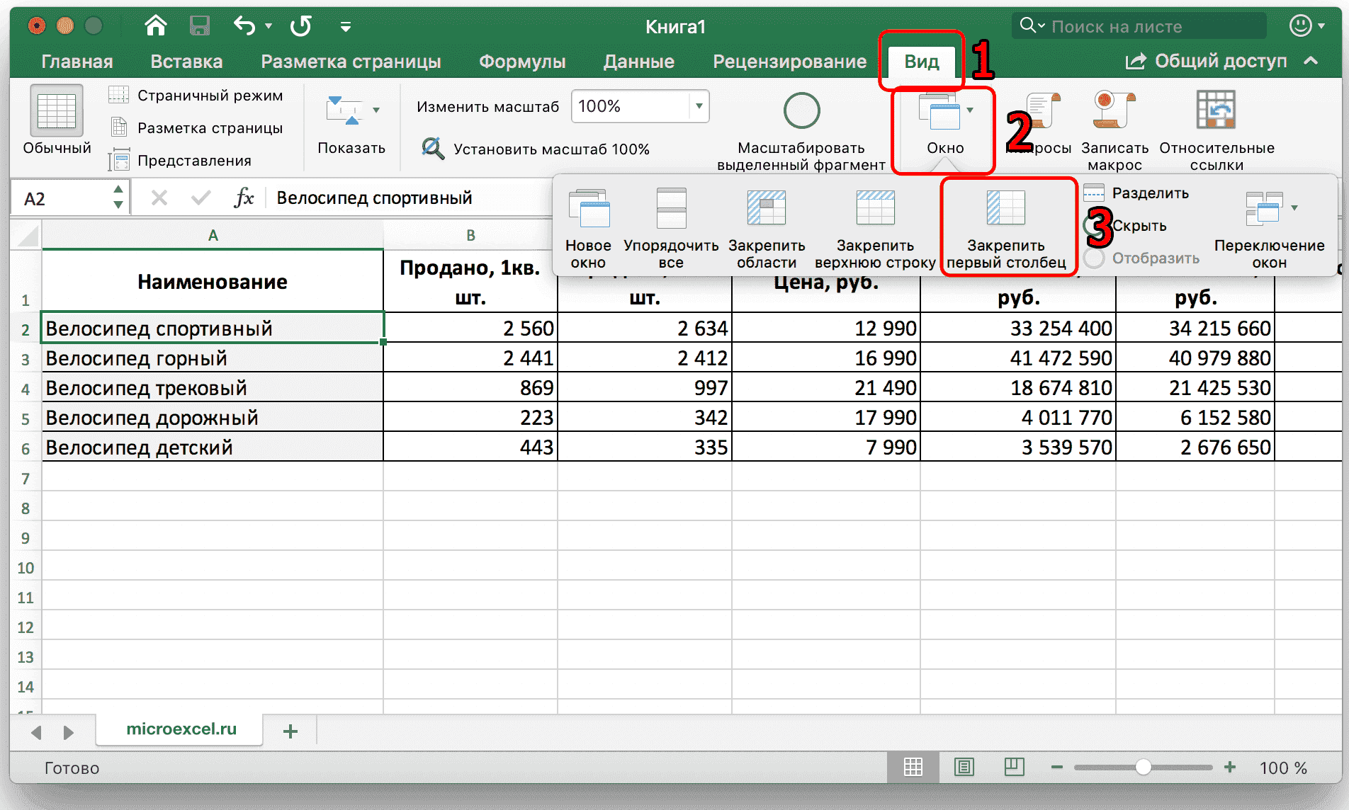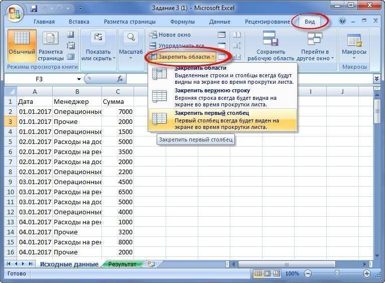 Урок закрепления столбца таблицы в Excel