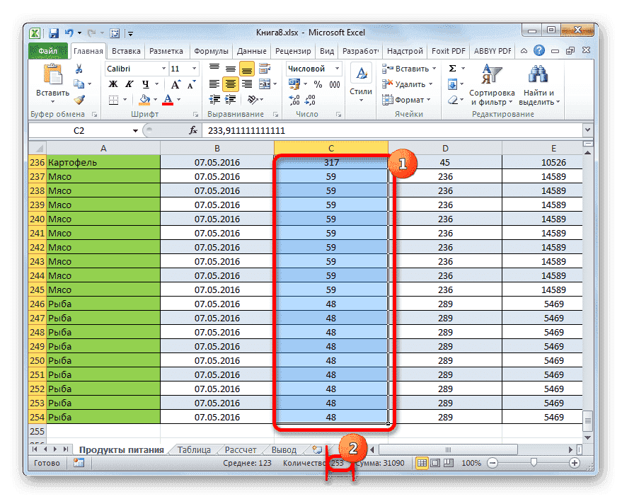 Расчет среднего значения в программе Microsoft Excel
