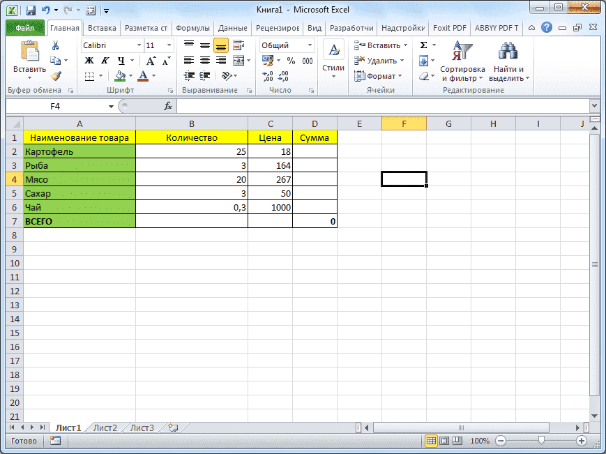 Суммирование столбцов в Microsoft Excel