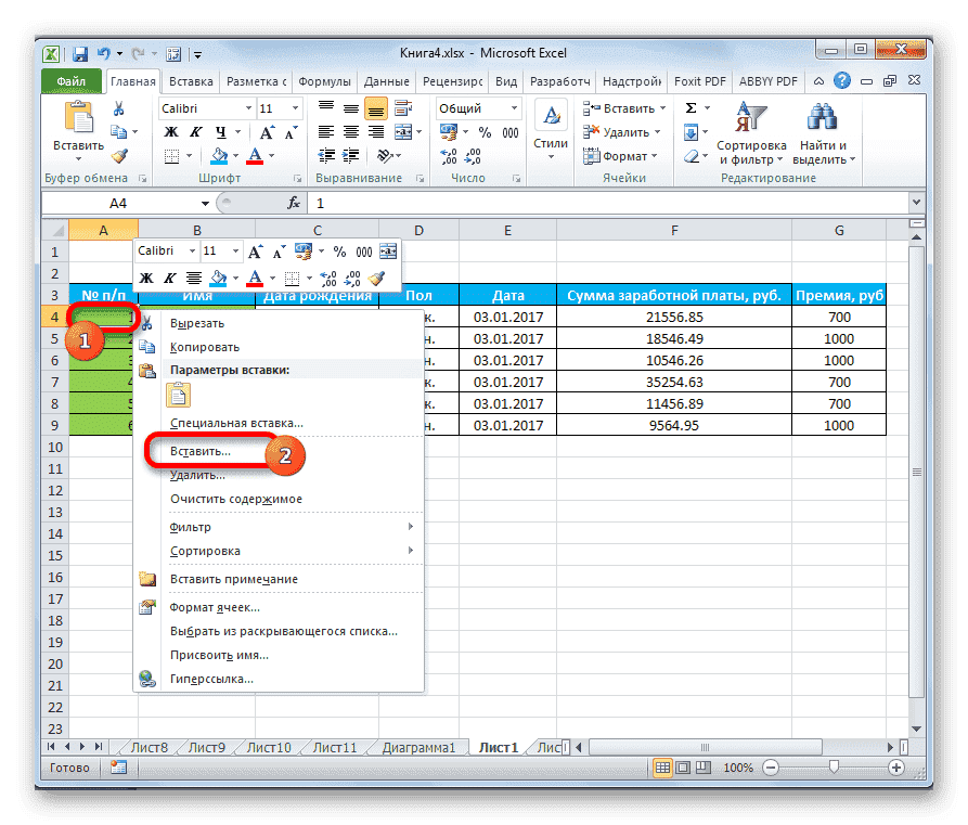 Добавление ячеек в Microsoft Excel