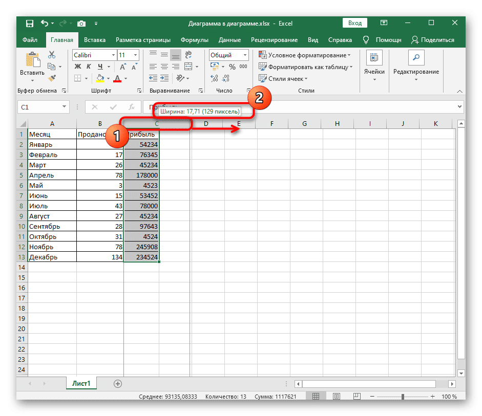 Расширение столбцов в Microsoft Excel