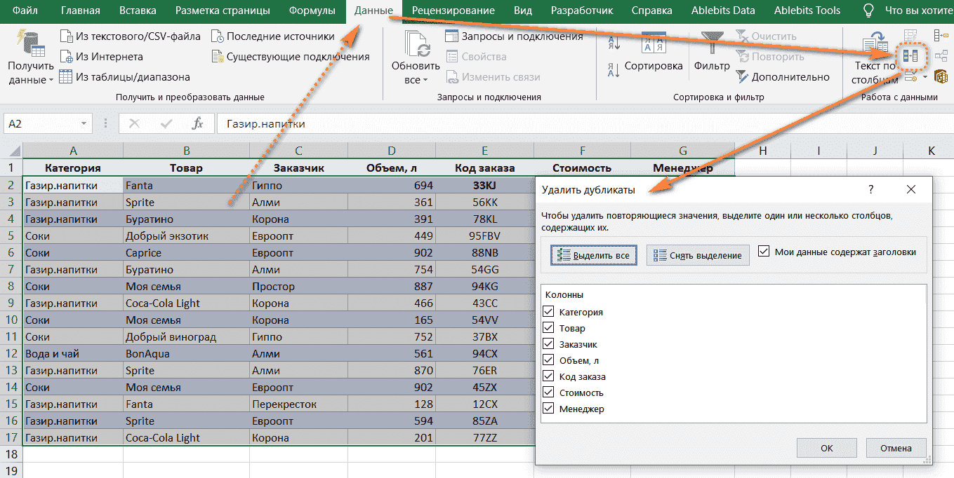 Как избавиться от дубликатов: найти и выделить повторяющиеся значения, строки и ячейки в таблицах Excel при помощи формул и без них.