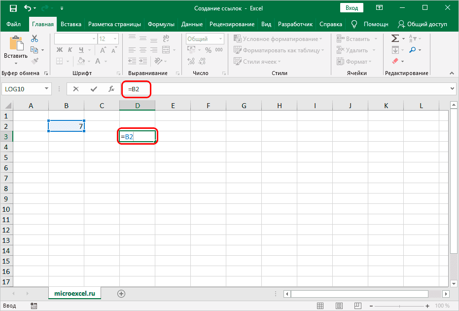 Создание ссылок в Excel