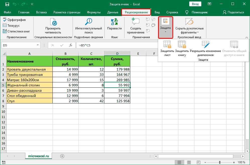 Защита ячеек от изменений в Эксель