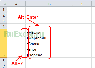 Символ переноса строки в Excel
