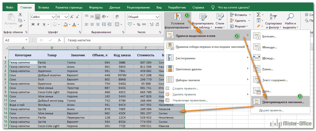 Как найти повторяющиеся значения в таблице Excel