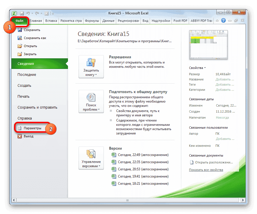 Восстановление несохраненного файла Excel