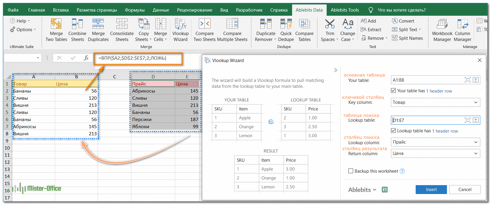 ВПР, несомненно, одна из самых мощных и полезных функций Excel, но она также одна из самых запутанных. Чтобы упростить вашу работу, вы можете использовать надстройку Ultimate Suite для Excel с мастером ВПР, который может значительно сэкономить вам время на поиск нужных данных.