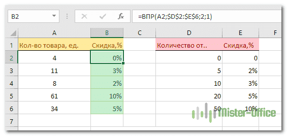 Допустим, у нас есть скидка для покупателей в зависимости от количества купленного товара. Вам нужно быстро подсчитать процентную ставку за совершенную покупку.