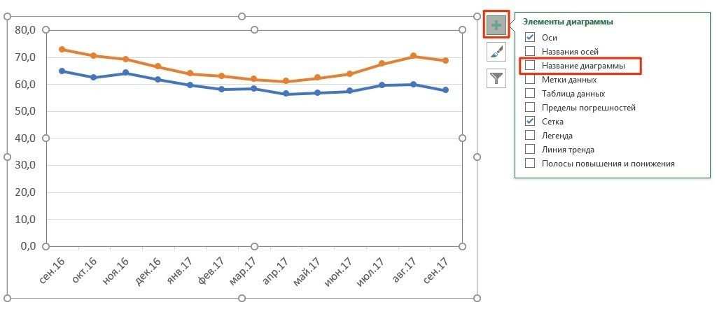 Как добавить название в график Эксель