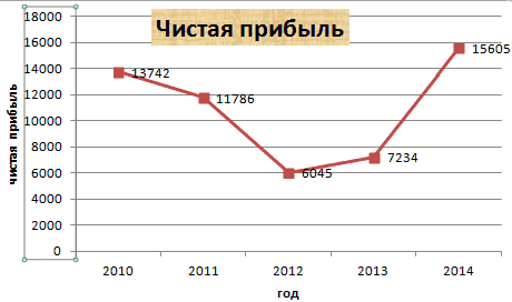 Допустим, у вас есть таблица, в которой представлена информация о чистой прибыли компании за последние пять лет.